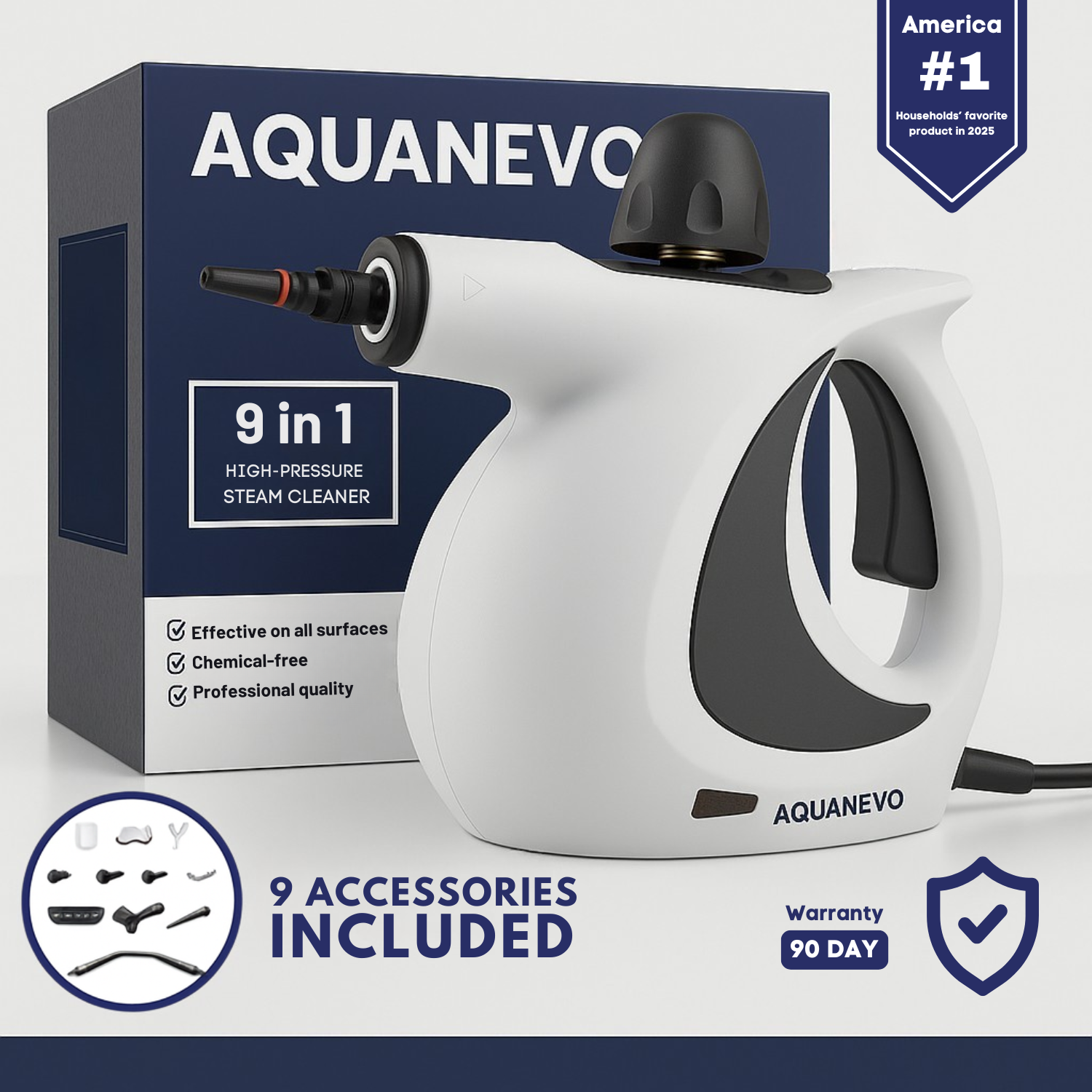 Aquanevo cleans naturally with pure steam, safe for children, pets, and the environment.